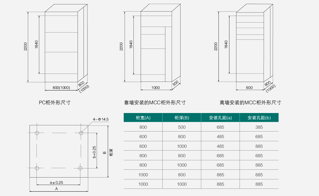 電動機控制中心(MCC)開關柜有靠墻安裝和不靠墻安裝二種,其頂部都為水平母線區域,水平母線區域下面為抽屜功能單元區域,該區域的寬度為600mm,安裝抽屜功能單元區域的高為1840mm,當柜體為靠墻安裝時柜的左部為功能單元區域,右部有一個200mm 寬的電纜出線區域,柜體外形尺寸為800/500/2200(寬/深/高),當柜體為離墻安裝時,柜體寬度為600mm,電纜出線區在柜體的后部, 柜體的外形尺寸為600×800(1000)×2200(寬×深×高)。柜體深度有800和1000二種,我們建議用戶選用1000深的柜體,以與PC 柜深度統一,當抽屜抽出柜外時,柜內帶電部分不外露,安全可靠。LKX廣州遠卓機電科技有限公司